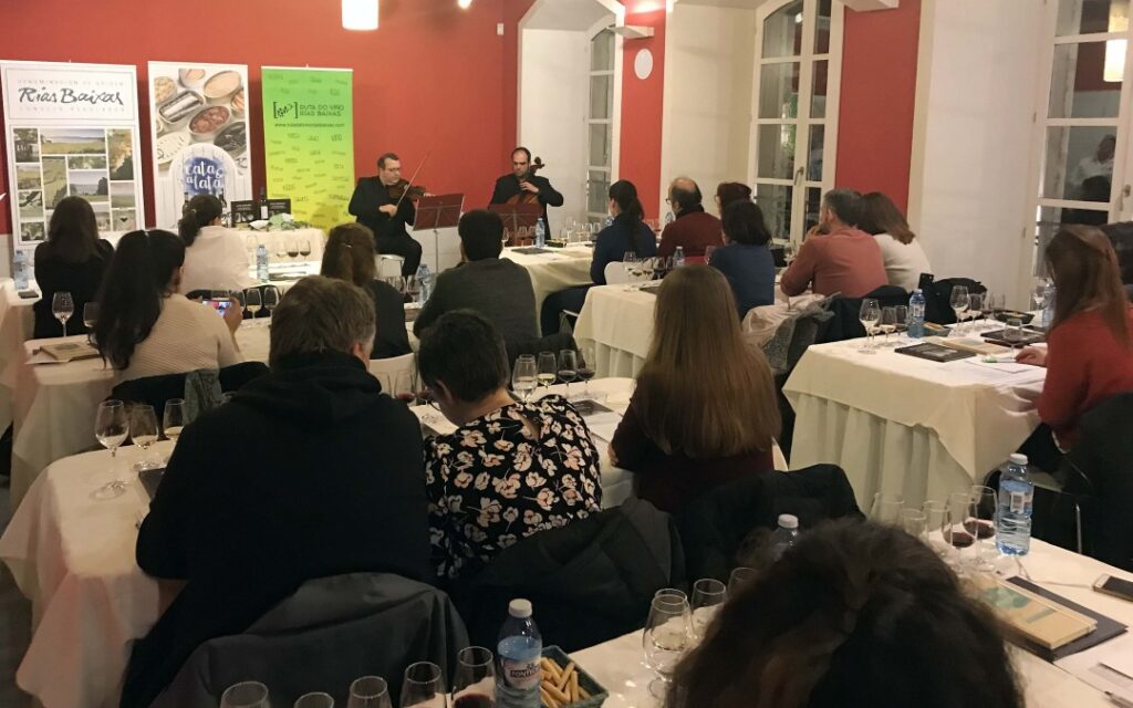 Los vinos se armonizaron con conservas de sardinilla, mejillones en escabeche y zamburiñas en salsa de vieira en una sesión que concluyó con un breve concierto en el que los instrumentistas interpretaron diversas bandas sonoras como las de la serie como Juego de Tronos o las películas Braveheart, La vida es bella, Memorias de África o Piratas del Caribe.
